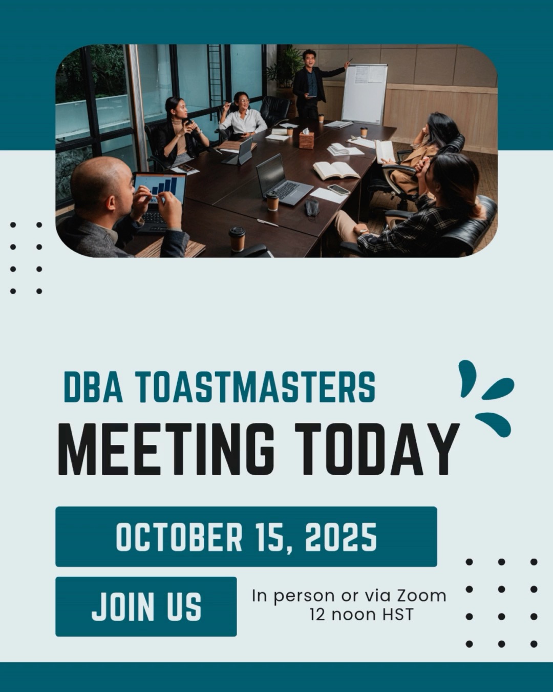 Our meetings are now being held in a hybrid format, so you can attend virtually via Zoom or in person in downtown Honolulu.
